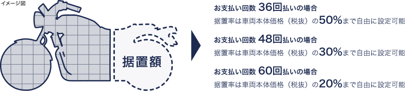 お支払い回数(36・48・60回)と据置額(最終回お支払い金額)を任意に設定できます。
